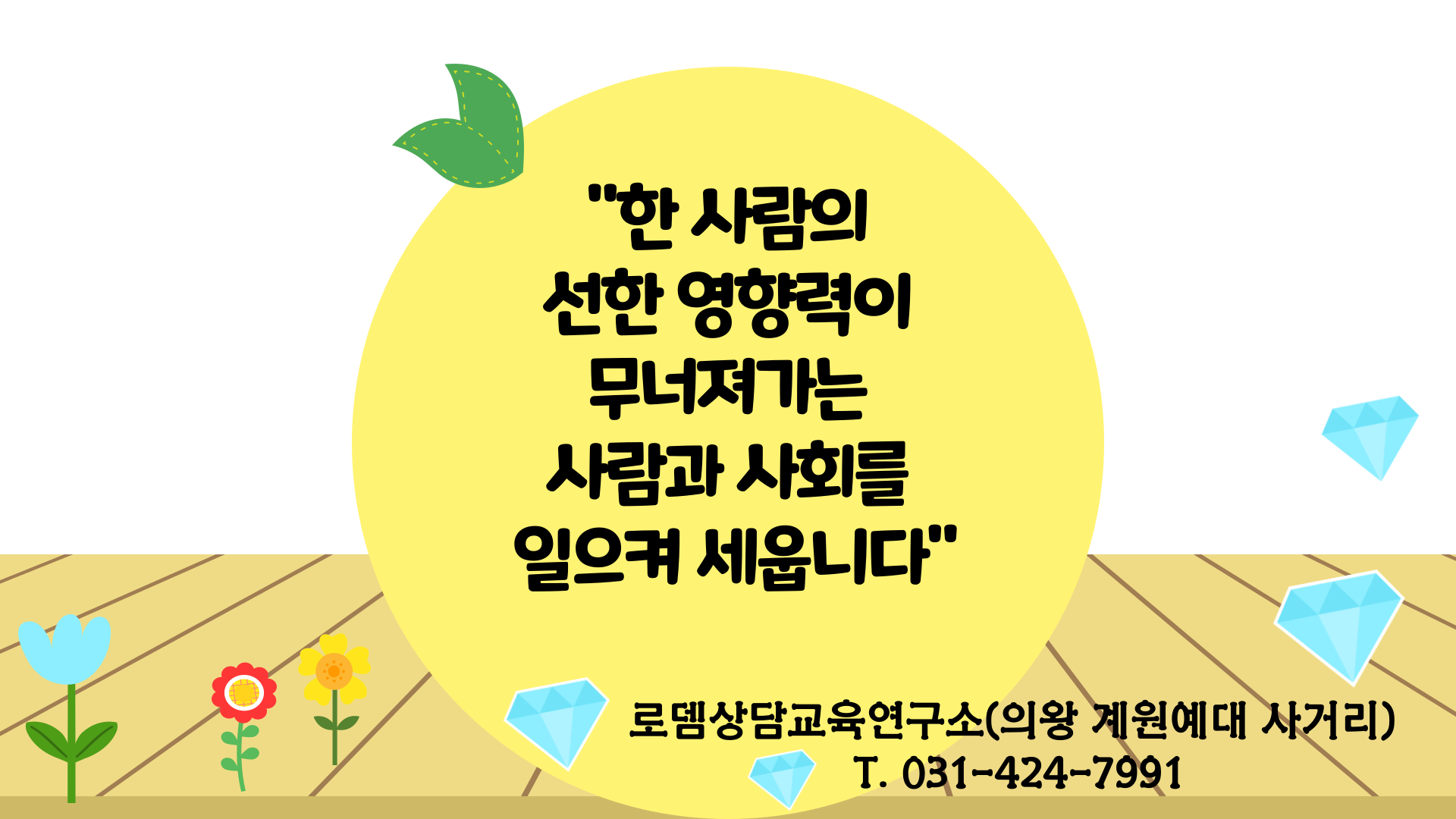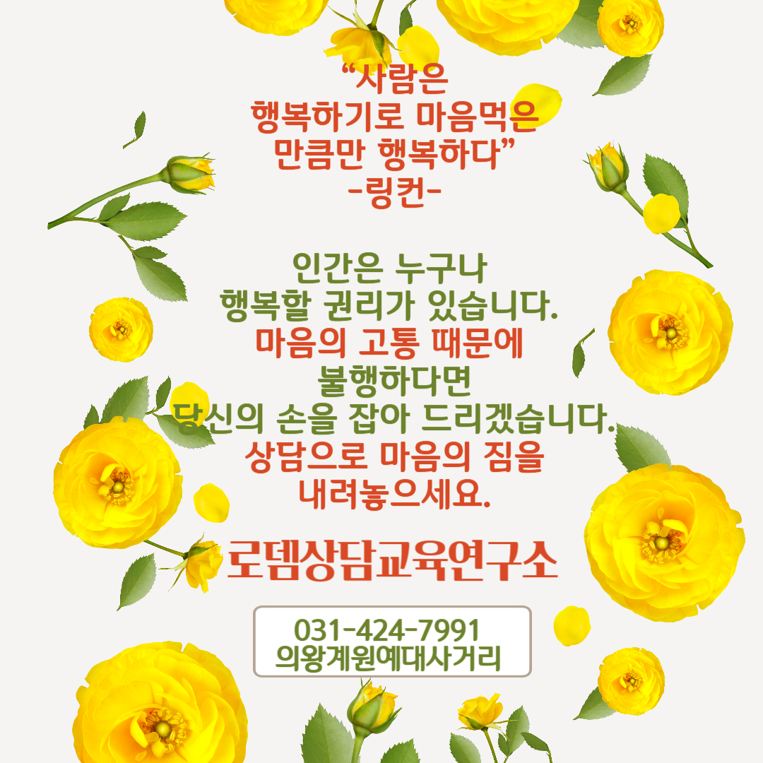 본 연구소는 연약한 인간의 모습을 지닌 소중한 분들을 위해 언제든지 상담실의 문이 활짝 열려있습니다. 신체의 일부가 상처를 입어 피가 나고 있다면 병원을 찾아 치료하는 것처럼, 마음의 질병을 크고